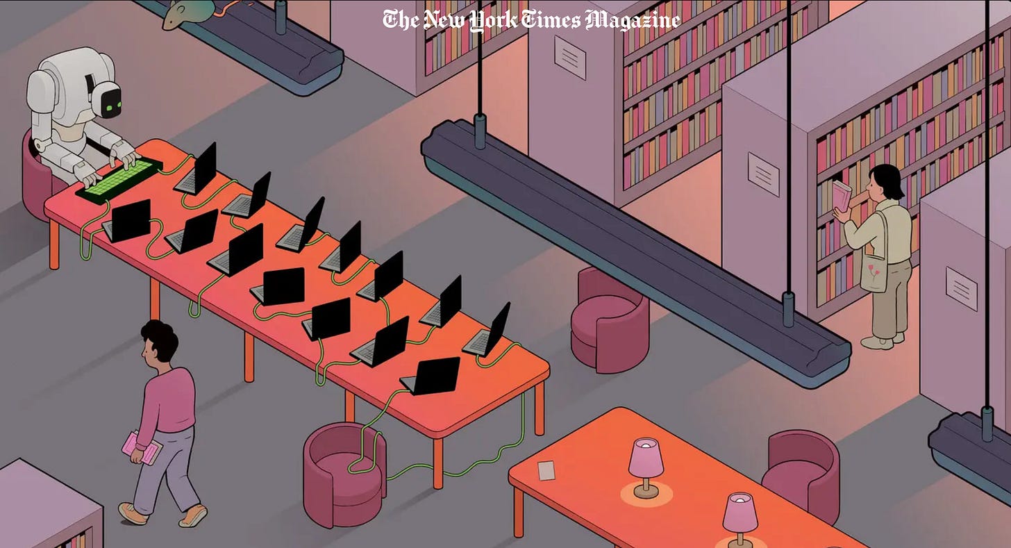 Het kan dus toch, een slim en toch leuk stuk over AI. Om eerlijk te zijn mijd ik de meeste stukken over onze nieuwe vriend als de pest. Het deprimeert me wat ik ervan verwacht en irriteert me als mensen schrijven wat ze er van verwachten. Veel leuker dan super positief nieuws over alle mogelijkheden en kansen die op ons afkomen, is dit stuk in de NYT dat Henk mij stuurde. Over de beperkte stijlvormen van AI die nu al overal opduiken in het publieke leven.